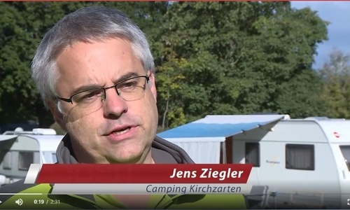 Fernsehbeitrag auf Baden TV vom 17. April 2023 "Den einen reicht ein Zelt, andere bevorzugen ein festes Dach überm Kopf. Doch, ob Zelt, Wohnwagen, Wohnmobil oder Mobilheim – Camping ist bei vielen nach wie vor beliebt."