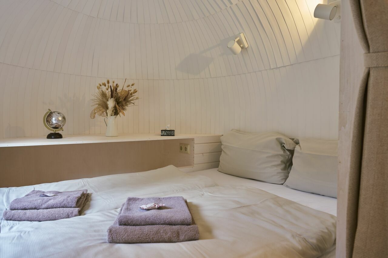 Diese kompakte, aber geräumige Unterkunft bietet dir die perfekte Kombination aus Komfort und Naturnähe. Die großzügige Grundfläche des Igluhuts bietet bequem Platz für zwei Personen, ideal für Paare. Das Innenraumdesign ist optimiert, um den verfügbaren Platz effizient zu nutzen. Die praktische Aufteilung des Igluhuts umfasst separate Schlafbereiche für Privatsphäre sowie einen gemeinsamen Wohnraum für gemütliches Beisammensein.