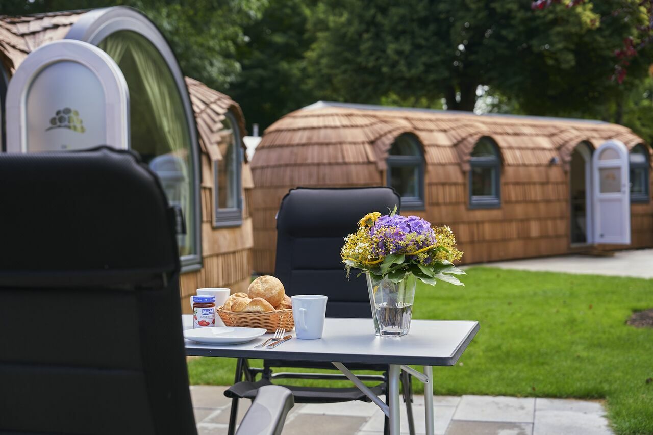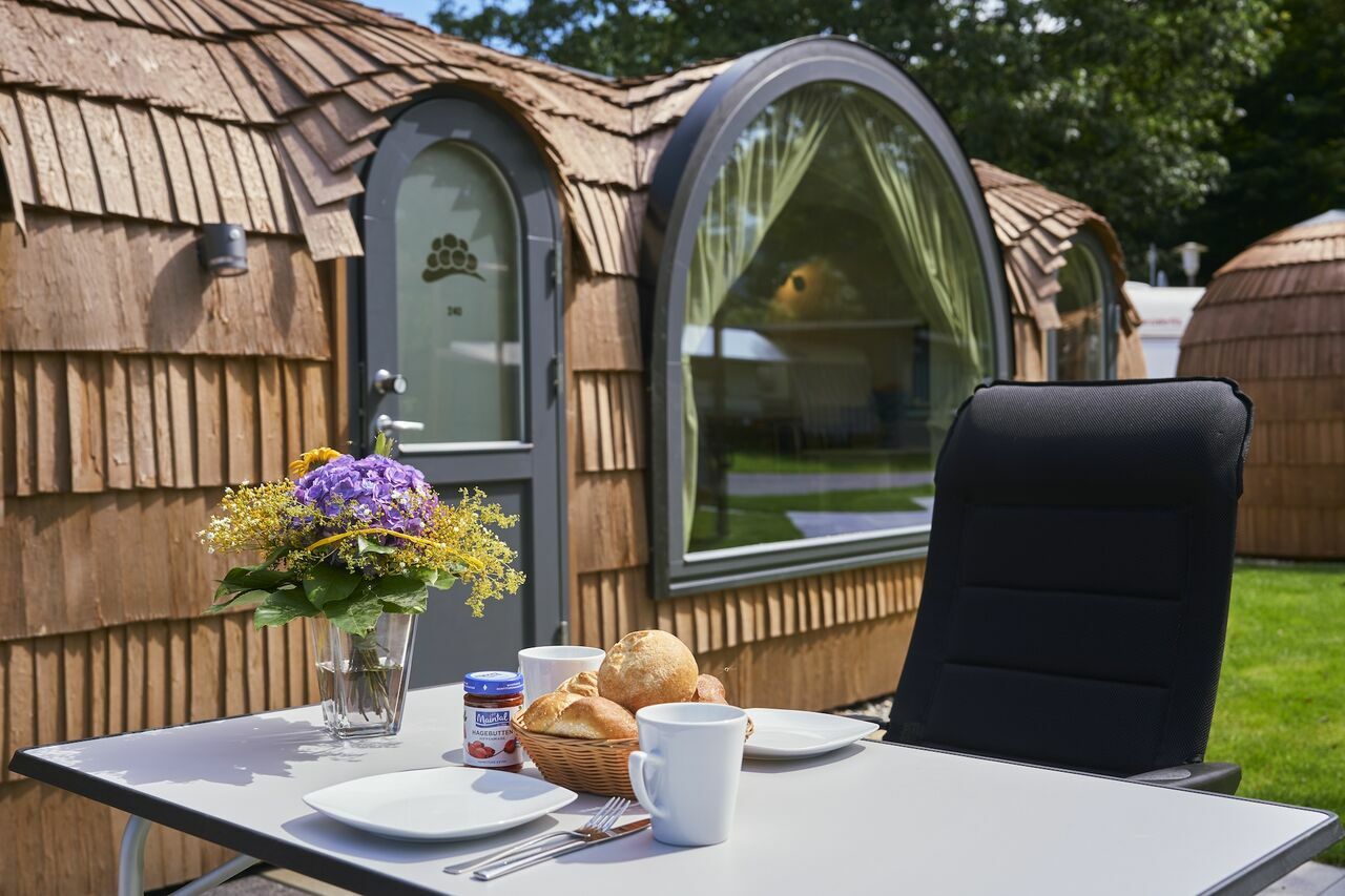 • Terrasse: Auf der Terrasse vor dem Iglu kann man die Abendsonne genießen. Gartenmöbel und Sonnenschutz.